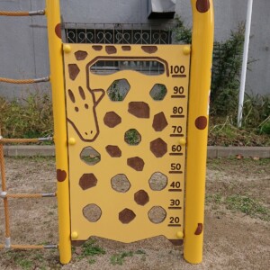 公園にはすべり台付きのアスレチックの他に雲底(うんてい)登る壁など、対象年齢は6〜12歳と小学生向けの大きな遊具、健康器具がストレッチ器具が3基、腕力器具が1基設置されています。