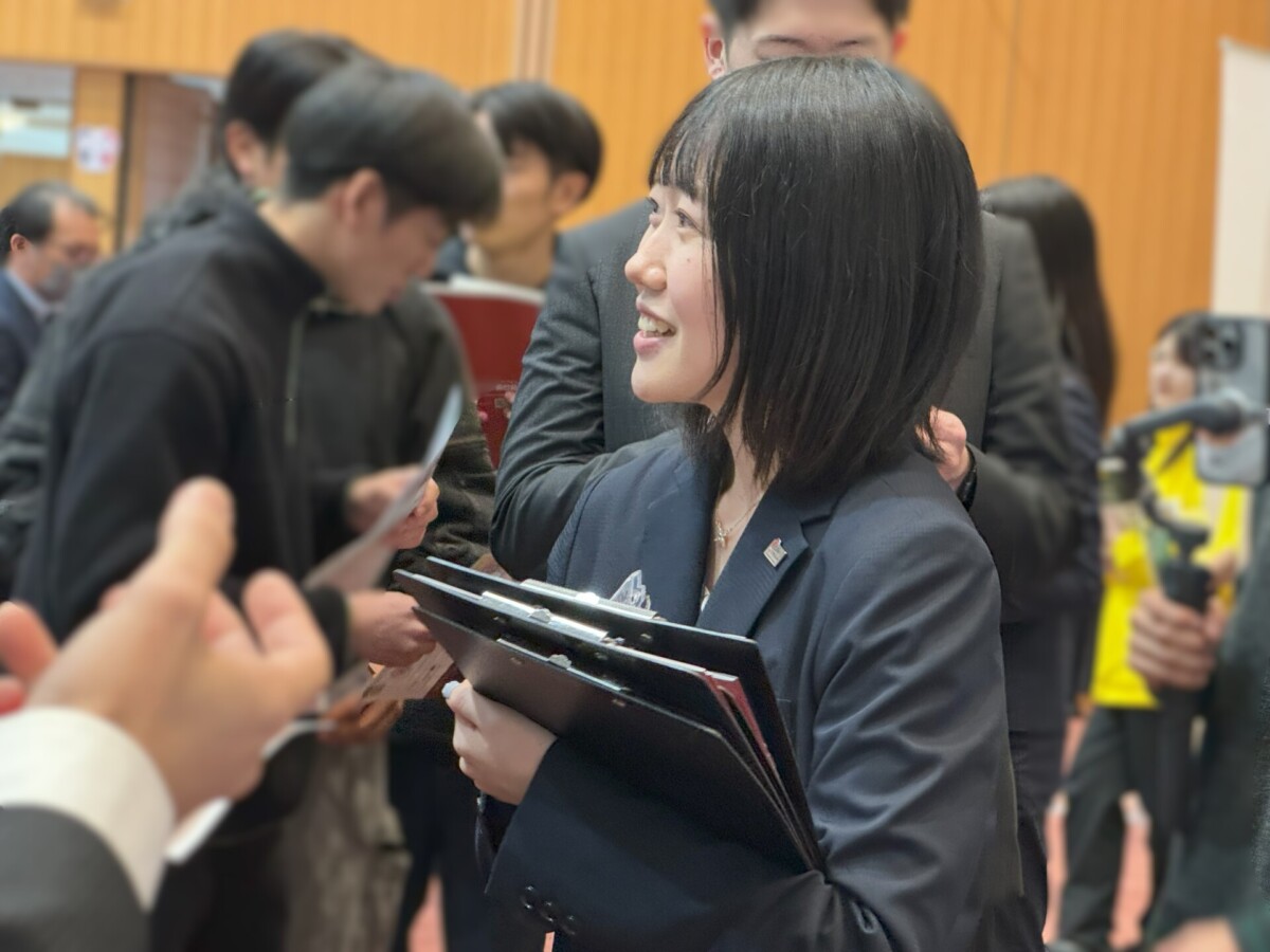 同じく入社1年目の藤井さんは、哲学を学んだ背景を活かし、学生に寄り添いながら、自社の理念や可能性を熱心に伝える姿が印象的でした。