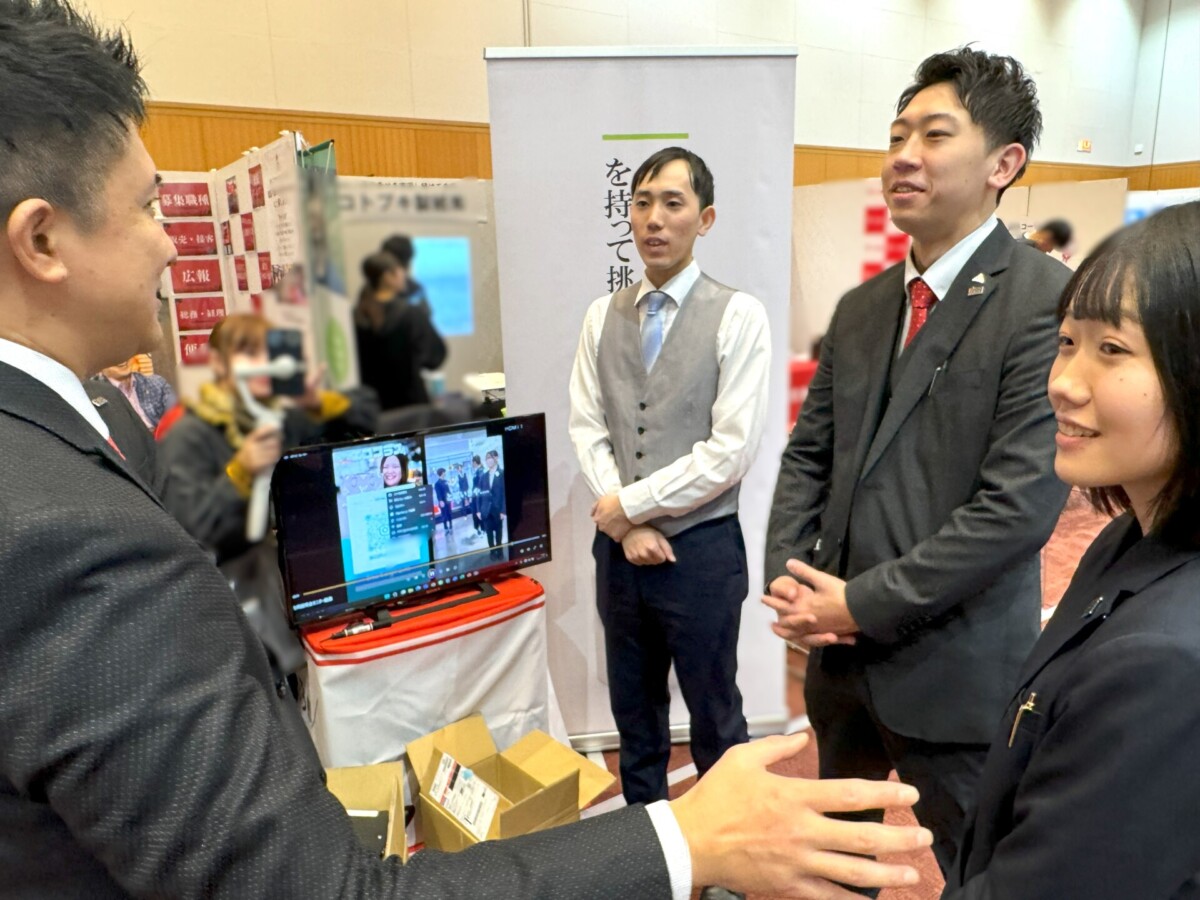 特に、ブース設営ではタペストリーやPOP、モニターでSNS動画を流すなど工夫を凝らし、学生が興味を持つ仕掛けを意識しました。
