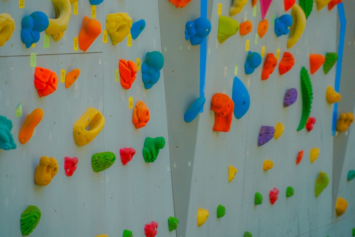 小学1~6年生に向けたクライミング教室で、参加者は8メートルのクライミングウォールにチャレンジすることができます。