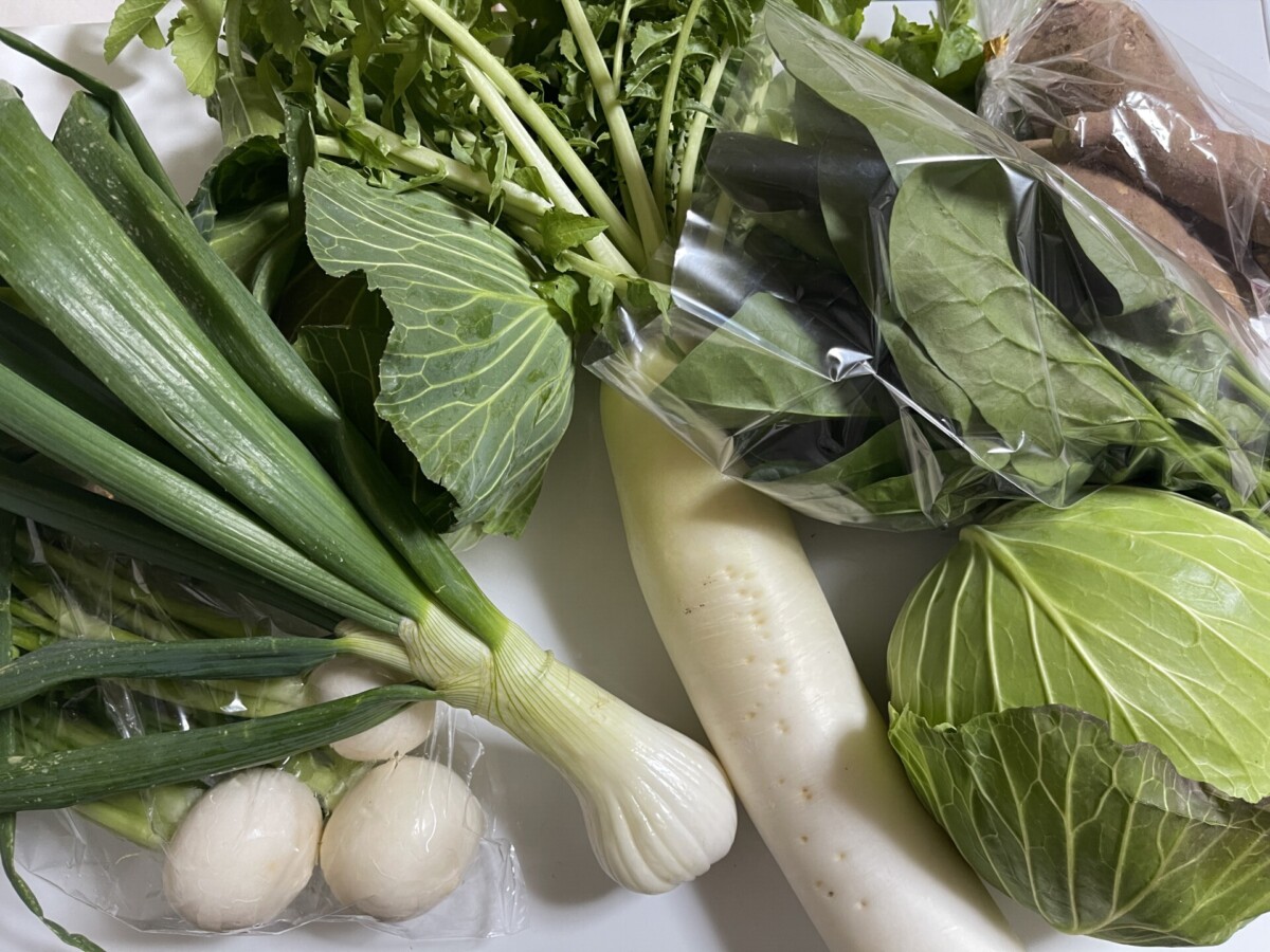 今回購入したのは、キャベツ、ほうれん草、小かぶ、葉玉ねぎ、熟成いも。そして、中でも食べるのを楽しみにしていたのが大根です。