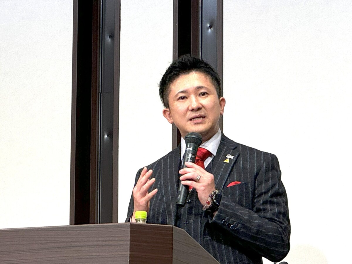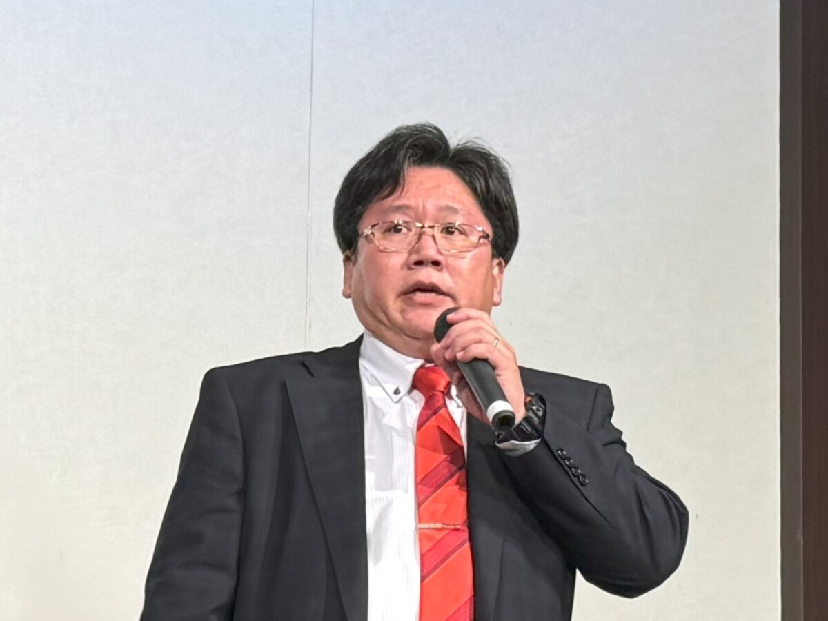 この日、代表取締役の有冨修氏がプレゼンテーションを行い、これまでの成果だけでなく20年にわたる苦難と軌跡も紹介しました。