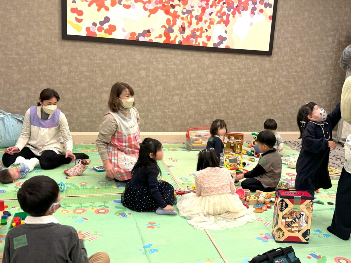 会場の同じフロアには市内のNPO団体による出張託児所が設置され、社員の子どもたちが楽しく過ごせる環境が用意されていました。