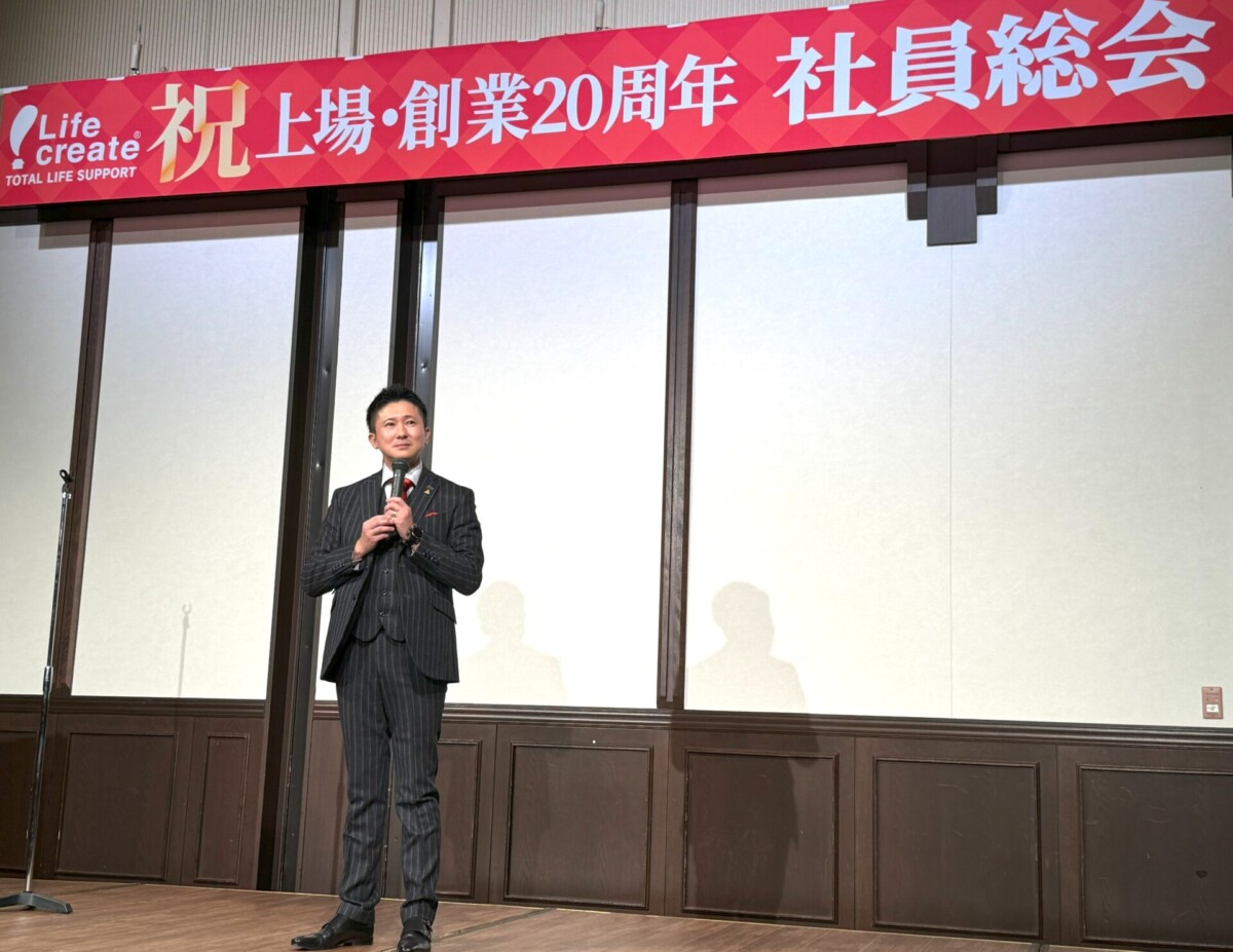 総会の最後は、有冨氏により「ライフクリエイトは、これからさらに飛躍し、成長していきます。私は社員一人ひとりの自己実現の舞台を創ると決め、ここまで走り続けてきました。しかし、これがゴールではありません。ライフクリエイトはさらなる発展を目指し、もっと多くの人々に貢献できる会社を目指していきます」という言葉で締めくくられました。