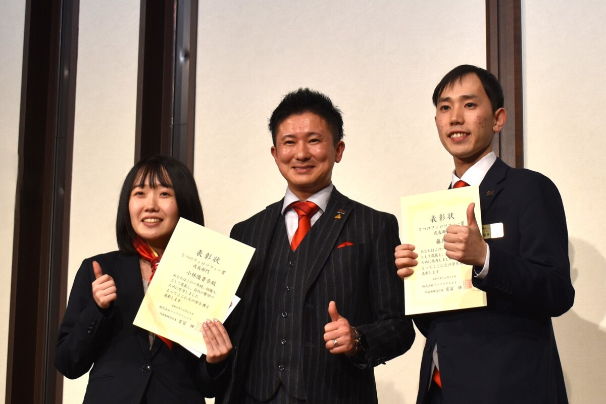 小林さんコメント:成長できたのは社長と社員の皆さんのおかげです。この賞を成長してきた同期の藤井さんと取ることができたことを本当に嬉しく思います。これからも成長を止めずに頑張っていきます!