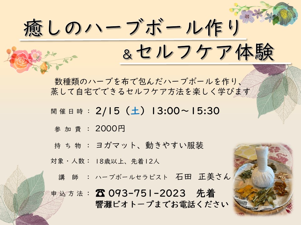 「癒しのハーブボールづくり&セルフケア体験」体験者募集中!/響灘ビオトープ