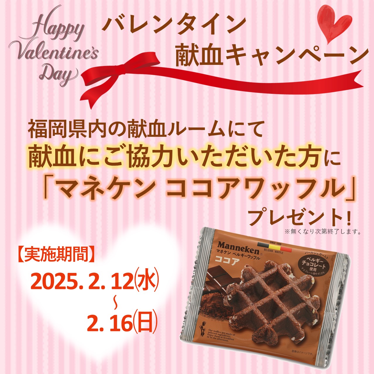 【献血ルーム限定】バレンタインデーキャンペーン実施!/福岡県赤十字血液センター北九州事業所