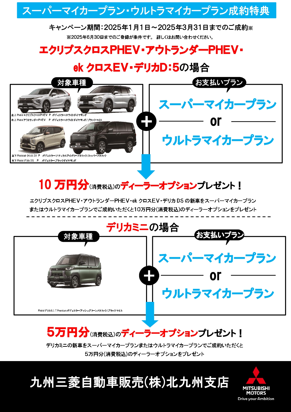 【車種限定】残クレまたはリースのご契約でオプションプレゼント/九州三菱自動車販売(株)北九州支店