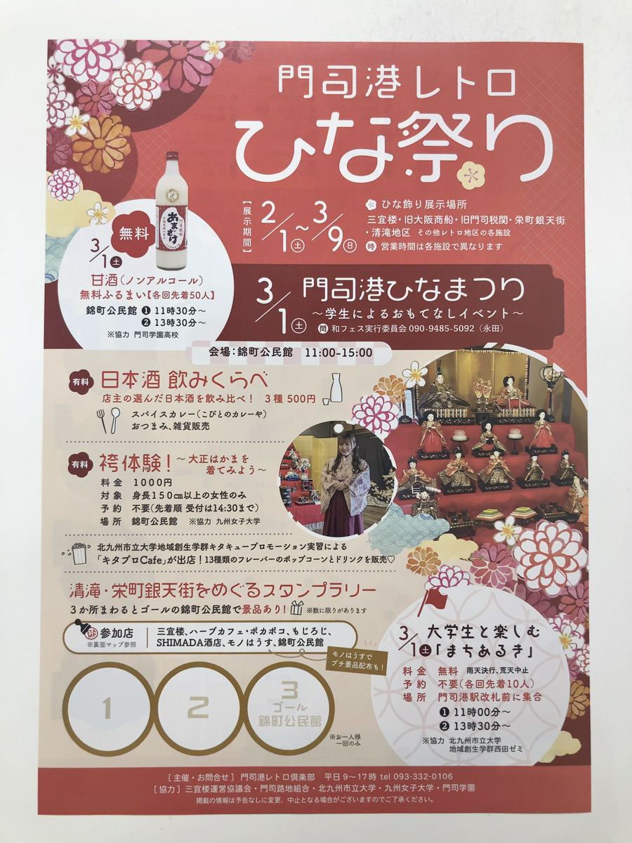 北九州市内では、3月3日の「桃の節句」に合わせて<ひな祭りに関連したイベント>が開催されます。