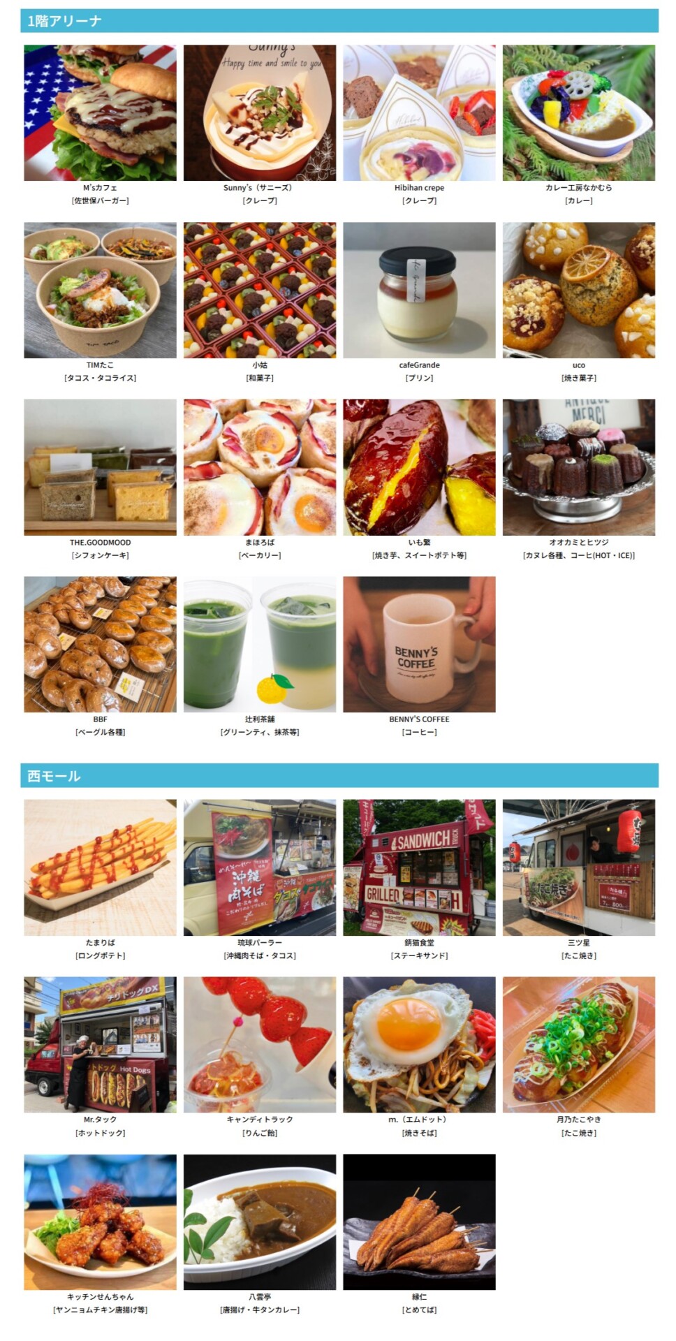 場所は1階アリーナと西モールの2ヵ所で開催されます。家族や友達とシェアしながらグルメを堪能できますよ。