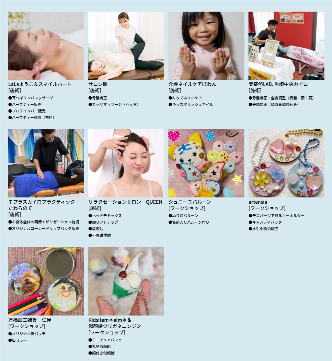 グルメ&リラクゼーションブースも充実!出店コーナも