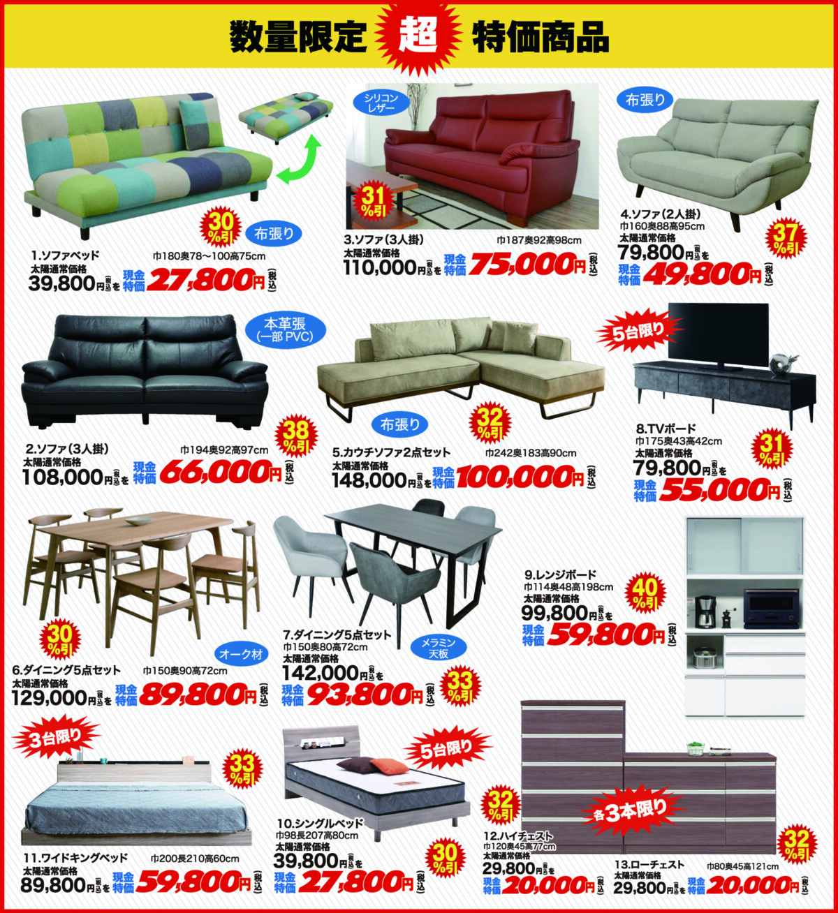当日は、会場限定のお買い得品も多数展示されており、来場者だけが手に入れられる数量限定の超特価商品が盛りだくさんです。