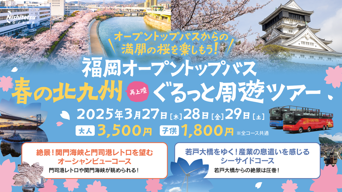 西日本鉄道株式会社は3月27日〜29日の3日間、北九州市の代表的な観光スポットを周遊する「春の北九州ぐるっと周遊ツアー」を開催します。
