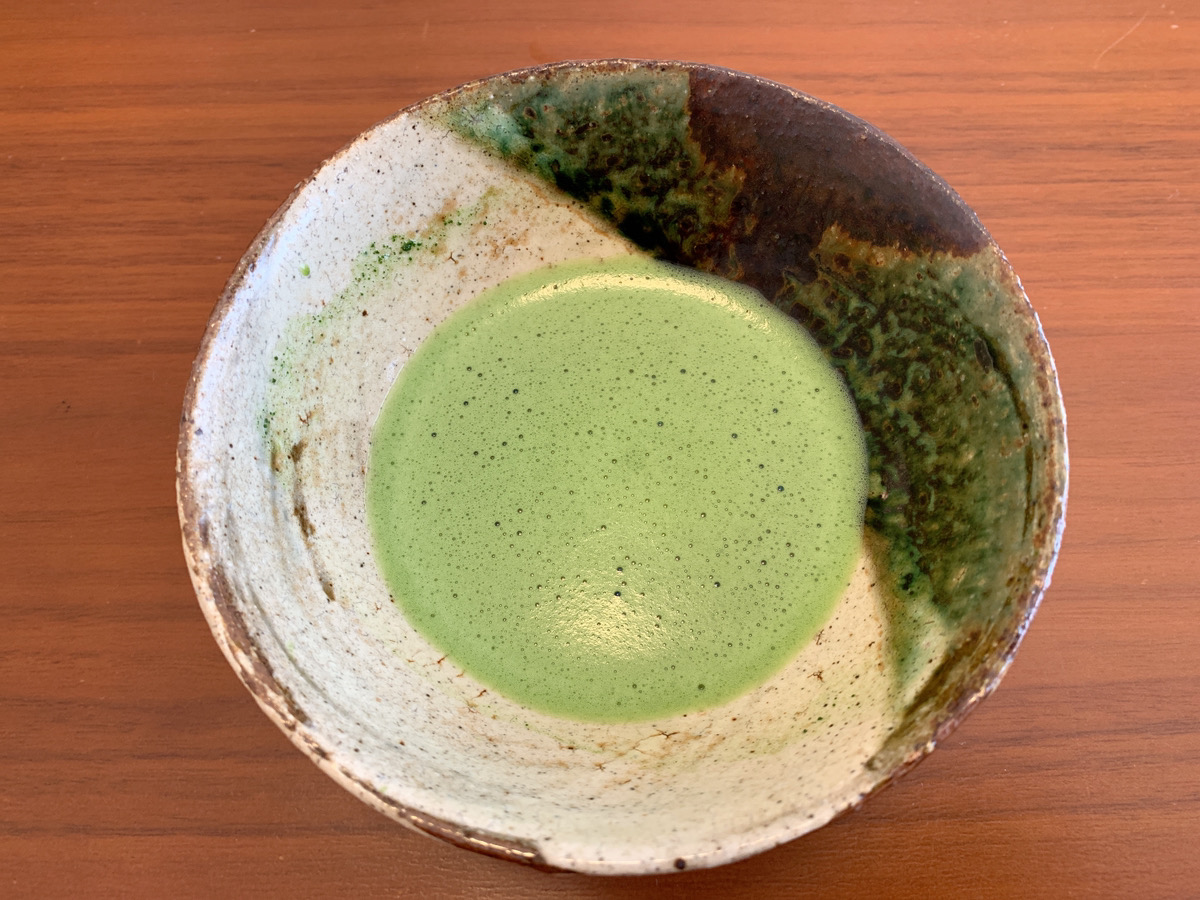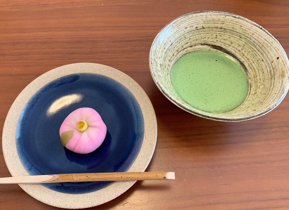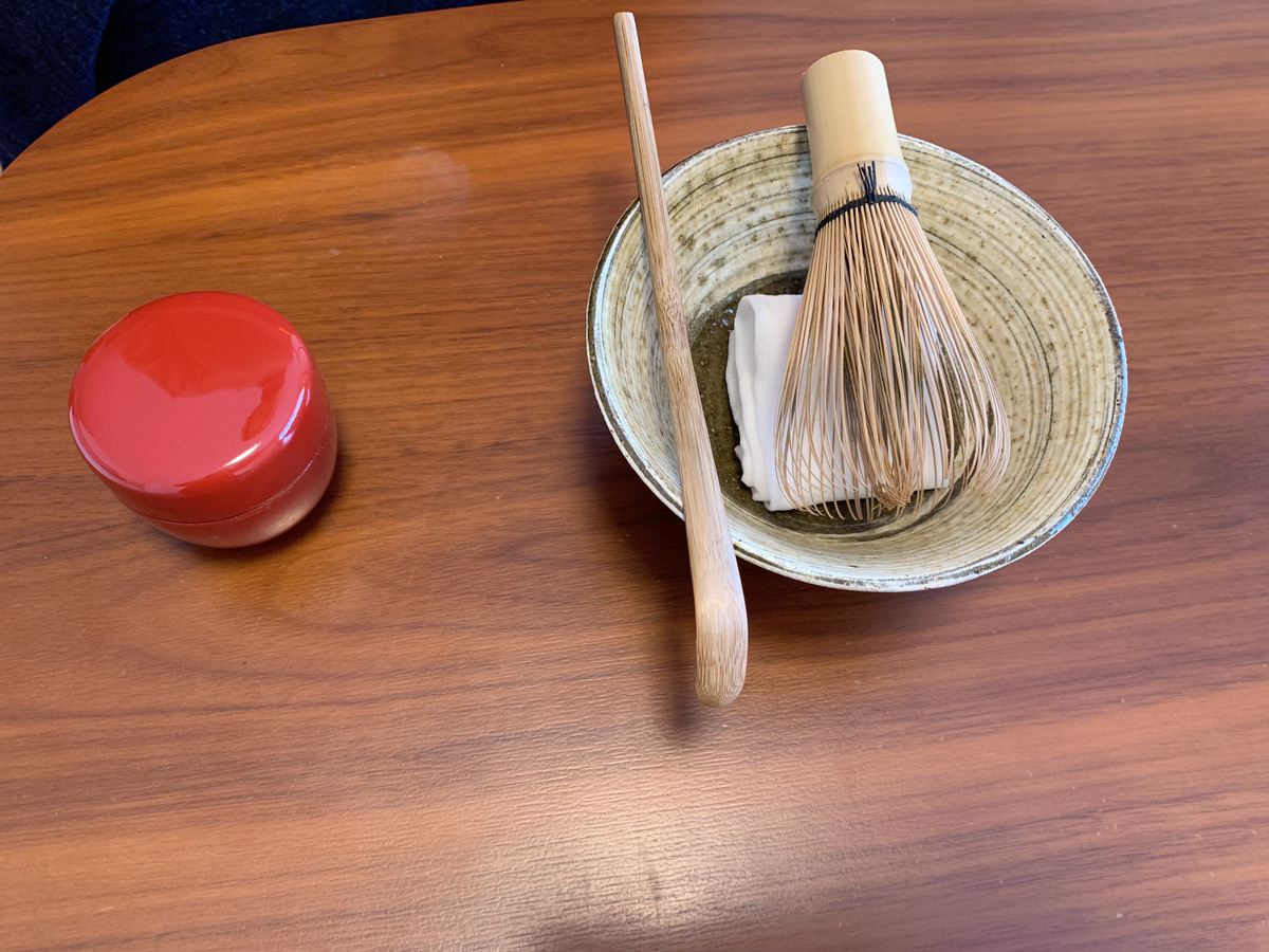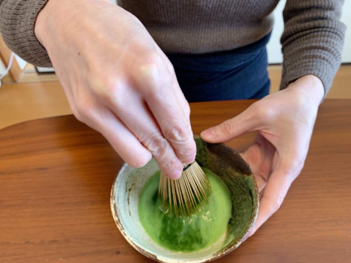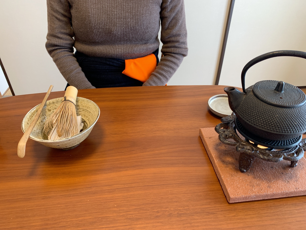 オンラインなどで<茶の湯お抹茶レッスン>も実施しているというaiさん。この日は卓上にて、椅子に座ったまま、お抹茶をいただきました。