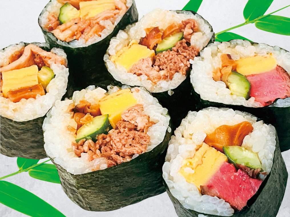 藤波家のステーキや牛すき焼き、ブランドポークの見た目も華やかな巻き寿司3種盛りを販売するのだとか。