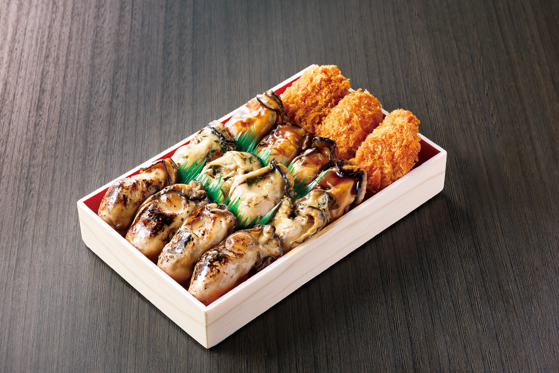 広島県・広島牡蠣専門店 千両屋は、肉厚なカキフライや煮牡蠣など色々な牡蠣料理をのせた弁当「かきづくし」を販売。