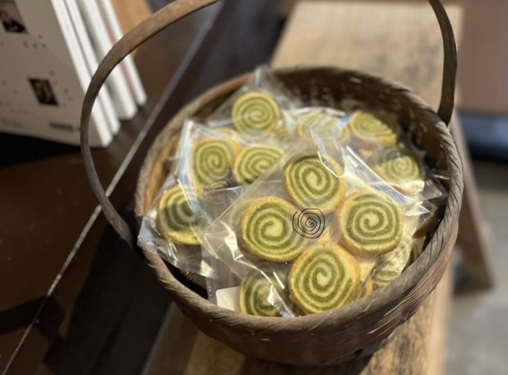 お店のトレードマークともいえるうずまき模様が描かれた<うずまきクッキー>。小倉北区香春口の「comichi かわらぐち」内に店舗を構えるスイーツ店「Qualia」がオリジナルで作ってくれているのだとか。