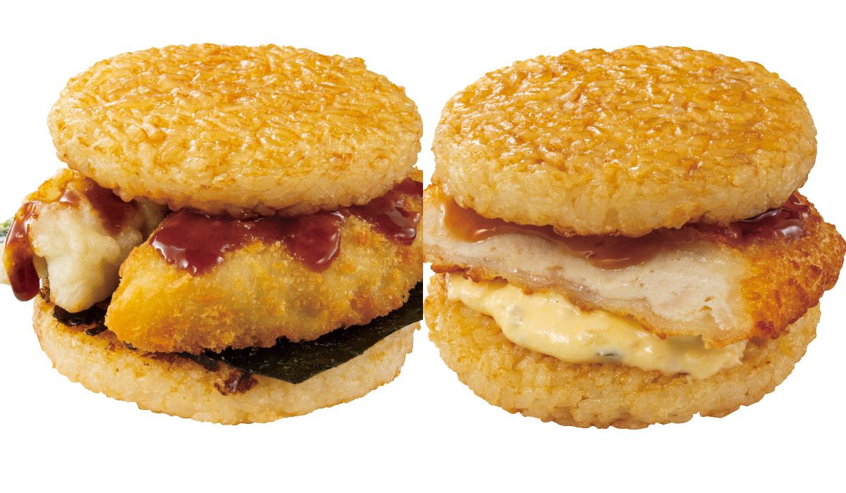 (画像:左「~BENTOバーガー~ のり弁バーガー」右「~BENTOバーガー~ チキン南蛮バーガー」)