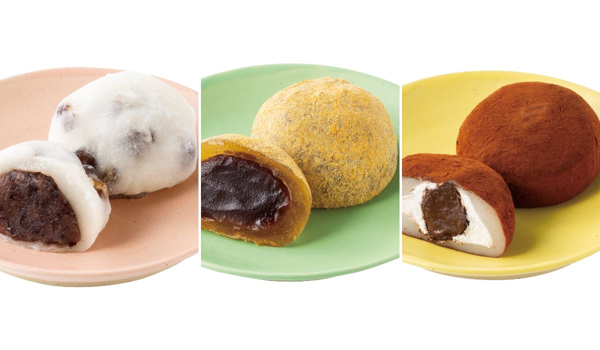 (画像:左から「北海道産小豆使用 つぶあん豆大福」「もっちり黒糖わらび餅(こしあん入り)」 「ちょこ大福」)
