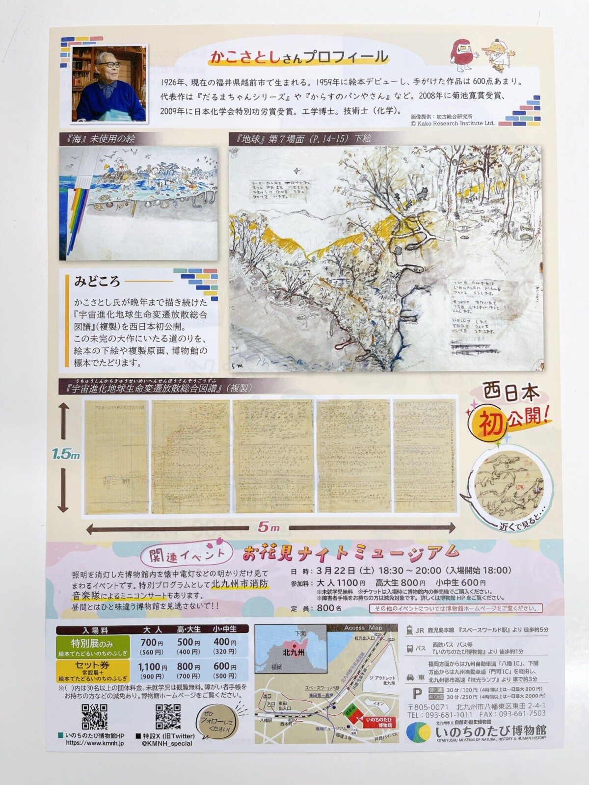 いのちのたび博物館(北九州市八幡東区東田2-4-1)で、春の特別展「絵本でたどるいのちのふしぎ かこさとし×いのちのたび博物館」が開催中です。会期は5月6日まで。