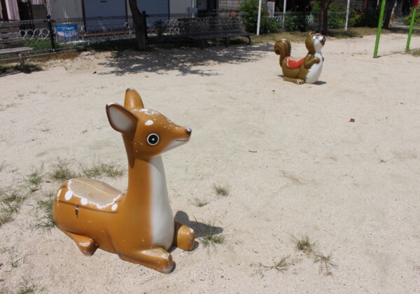 老松市場から歩いて2分ほどの場所にある「桜町南公園」。 愛らしい動物たち 広い園内には、ブランコが2台とすべり台がありました。 ...