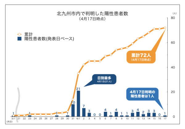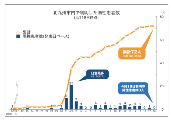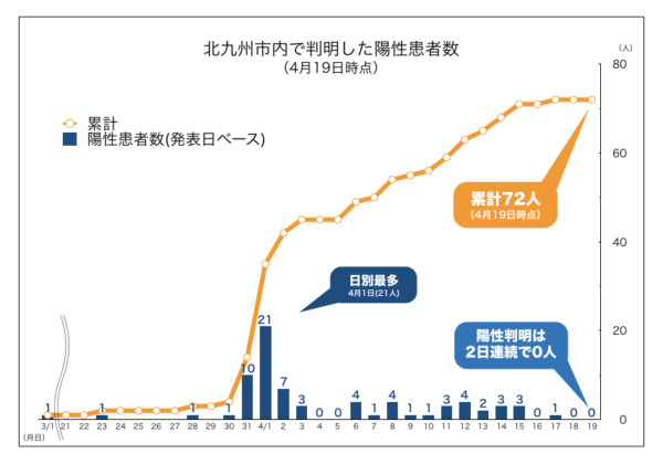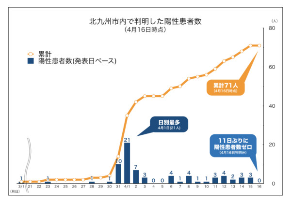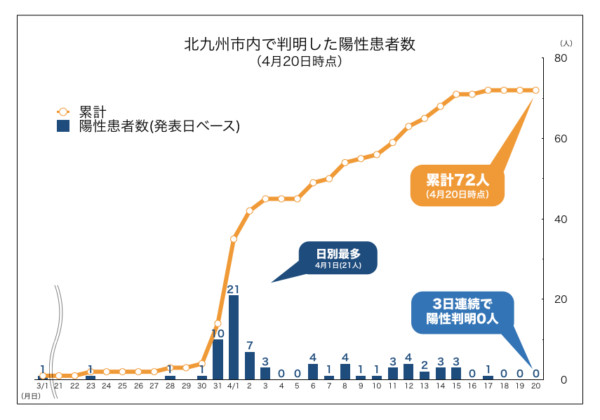 【新型コロナ/北九州】4月21日時点の感染者推移 4日連続で感染者ゼロ