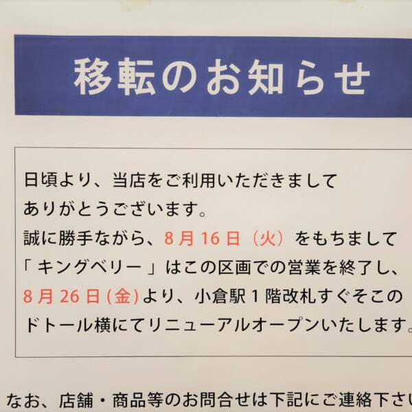アミュプラザ小倉「キングベリー」まもなく移転オープン【北九州市小倉北区】