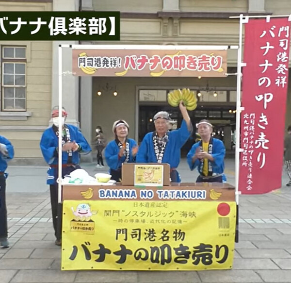 門司港の名物である「バナナの叩き売り」。「日本遺産」の構成文化財の一つにも認定されており、門司港レトロの観光客や住民を楽しませて...