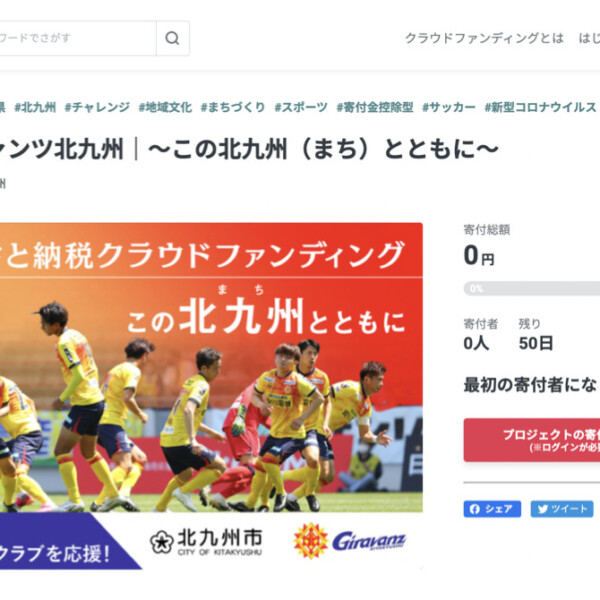 北九州市とギラヴァンツ北九州が共同実行者となり、2500万円を目標としたクラウドファンディングプロジェクト「北九州市×ギラヴァン...