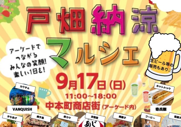 9月17日、日曜日に戸畑区の中本町商店街のアーケード内で「戸畑納涼マルシェ」が初めて開催されます。 主催は戸畑第一料飲組合(「料...