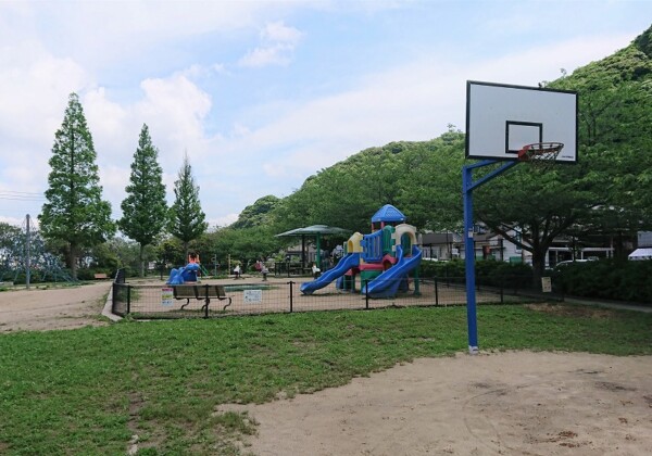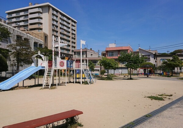 門司港に暮らす人たちの憩いの場である、広々とした緑豊かな「老松公園」。グラウンド側から「門司校区公民館」側へと道路を渡ったところ...