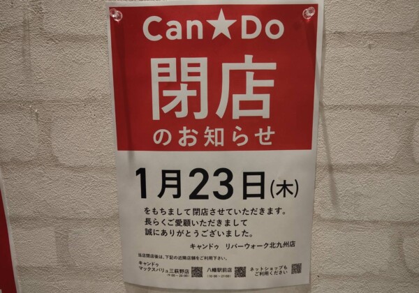 リバーウォーク北九州(北九州市小倉北区室町1-1-1)の2階にある「キャンドゥ リバーウォーク北九州店」が1月23日をもって閉店...