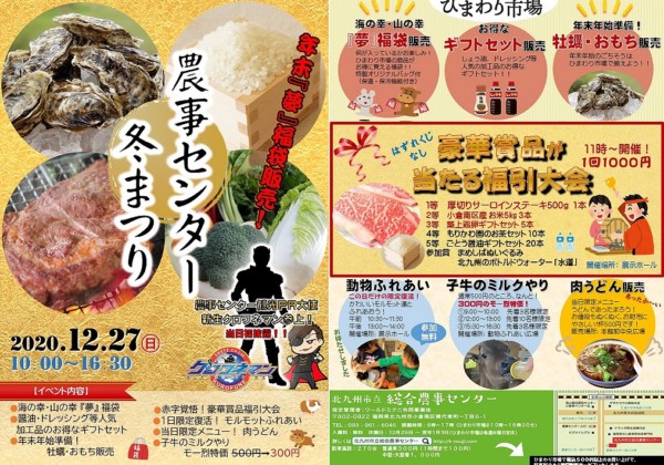 12月27日(日)午前10時~午後4時30分、「北九州市立総合農事センター」(北九州市小倉南区横代東町1-6-1)で今年最後とな...