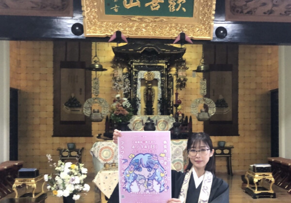 北九州市小倉北区原町にある長玄寺で4月14日、お釈迦さまの誕生を祝う「花まつり」とともにお花をテーマにした「フラワーアートマルシ...