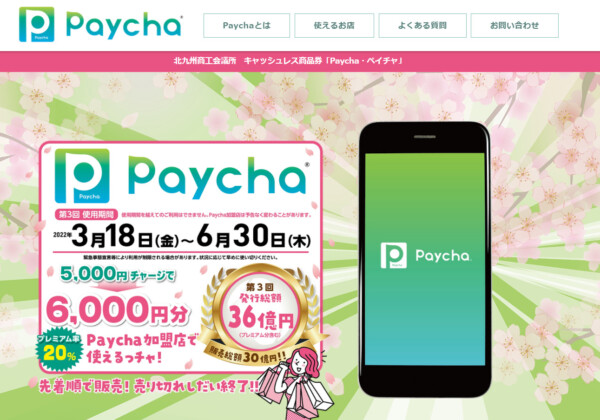 北九州商工会議所が発行するプレミアム付きキャッシュレス商品券「Paycha(ペイチャ)」。 3回目の販売が3月4日午前9時からス...