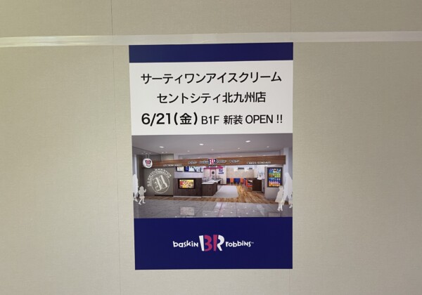 セントシティに「サーティーワンアイスクリーム セントシティ北九州店」がオープンします。 開店日は6月21日で、場所は地下1階にあ...