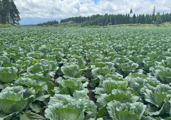 熊本県阿蘇市波野地区、標高900メートルの澄んだ空気と清らかな水に恵まれた山間地に、見渡す限りのキャベツ畑があります。 遠くに阿...