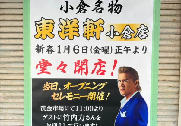 1月6日(金)正午、「東洋軒 小倉店」がオープンします。 場所は黄金市場専用駐車場入り口の横。貴船市民センター側で、以前はパン屋...