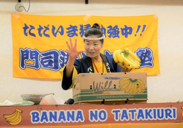 「門司港バナナ塾」開講 門司港駅長ら12人が「バナナの叩き売り」学ぶ