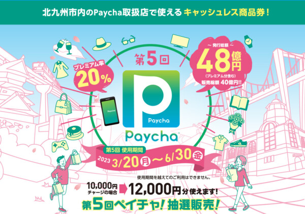 北九州商工会議所が発行するプレミアム付きキャッシュレス商品券「Paycha(ペイチャ)」。5回目の販売が決定しました。 5回目は...